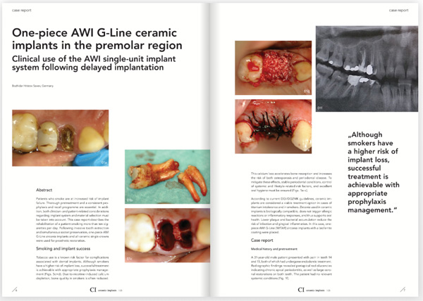 by witarawi - Pressebeiträge - 6. Februar 20266. Februar 2026 One-piece AWI G-Line ceramic implants in the premolar region Clinical use of teh AWI single-unit implant system following delayed implantation CERAMIC Implants -internatonal magazine: Artikel lesen